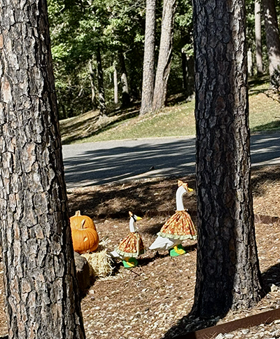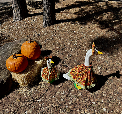 It started as an idea with me after seeing a dressed-up goose in a tutu while online. I was curious, and so I did some research. I figured I’d try it myself in my front yard, where we place pumpkins each fall. So I ordered a plain white goose, 23″ of heavy plastic, and a 17″ smaller goose from Amazon. While waiting for them to arrive, I searched some more and quickly learned that clothes for porch geese come in way more styles than I ever expected—think pirates, doctors, sunflowers, or even full rain gear. Of course, I wanted to dress up my own geese when they arrived. So I went shopping online and found that a lady who lives near me makes clothing for Gaggle Geese. I contacted her and she was happy to give me some tips and create costumes for my geese. Before a long, dressing up my new geese was just something Im going to look forward to doing every month. Im now brainstorming what themes to try next.